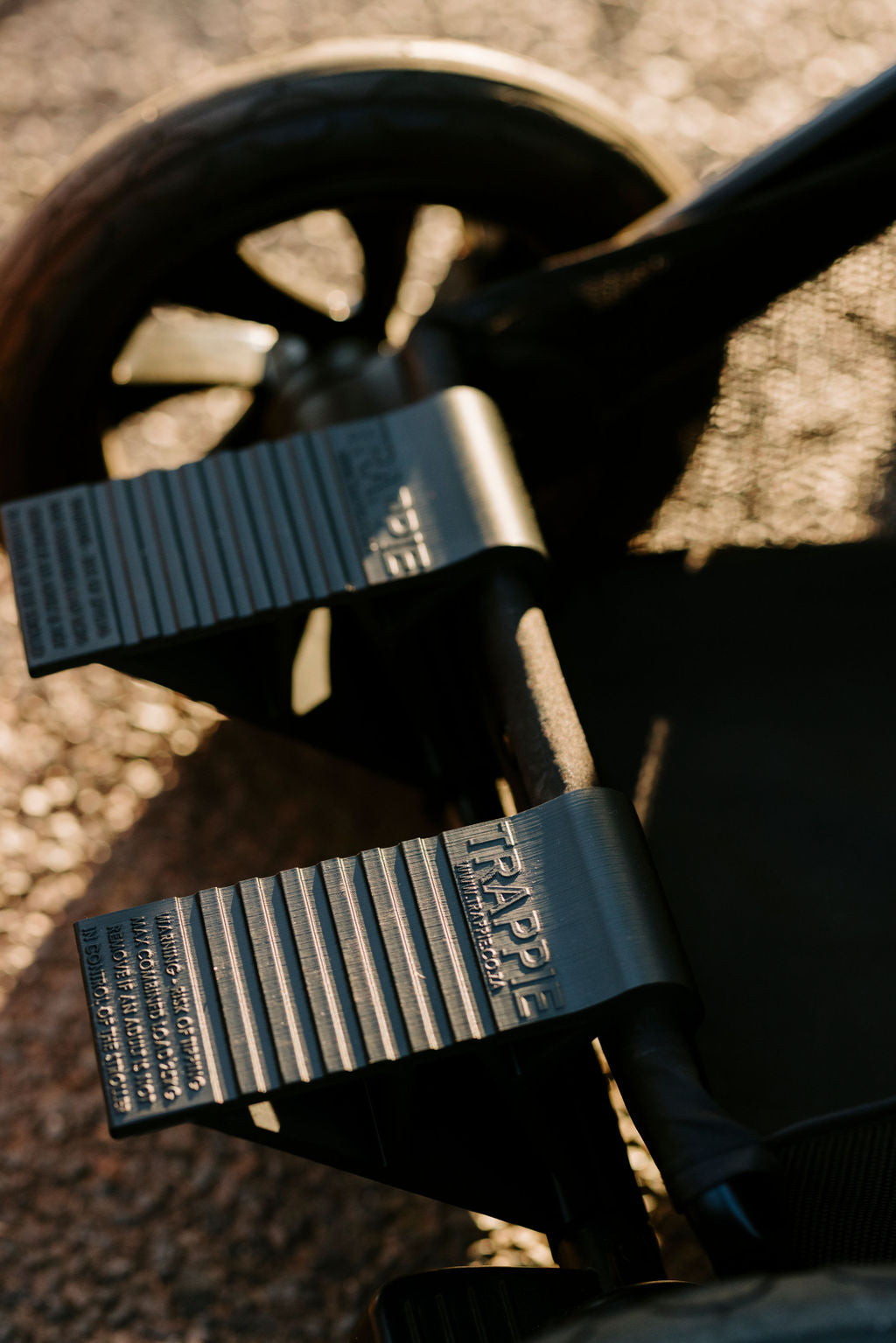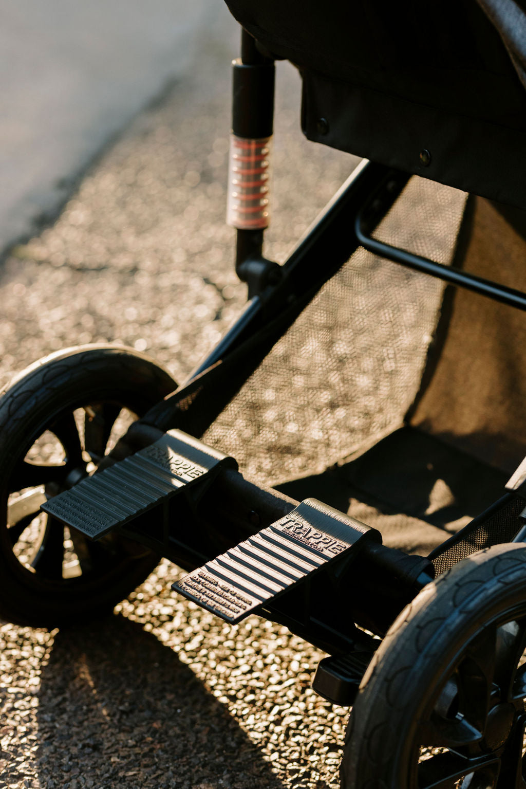 Introducing TRAPPIE, the perfect addition to your Noola Elite that keeps older siblings happy and close on the go! Designed to easily attach to the frame of the Noola Elite. Trappie creates a sturdy, comfortable platform for your toddler or older child to stand and ride along while their younger sibling enjoys the seat upfront.